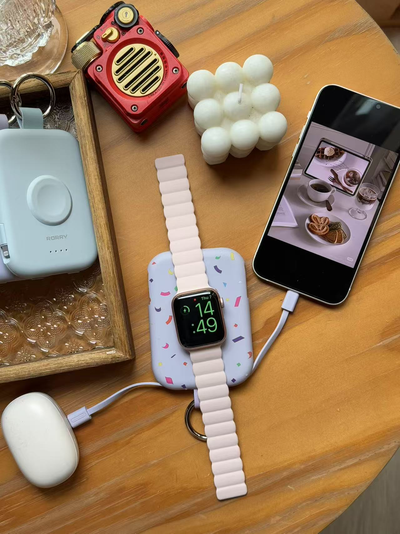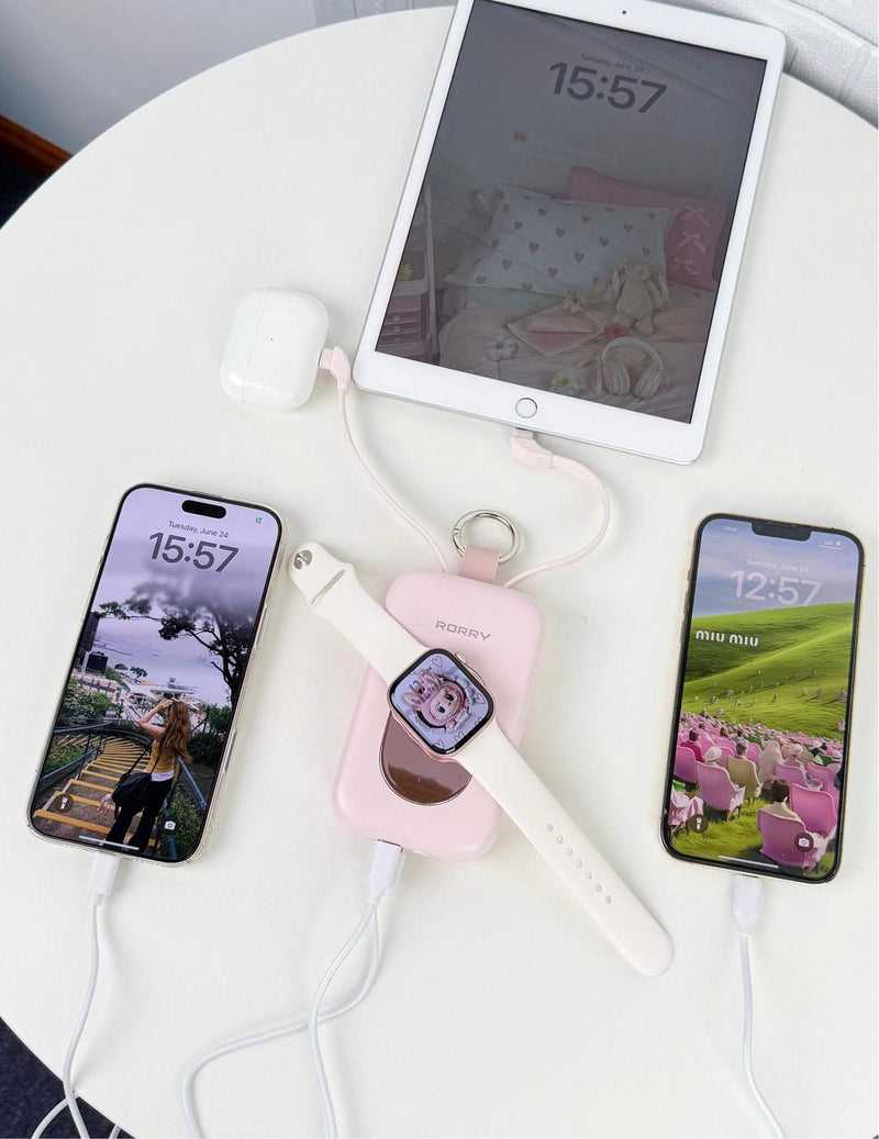 Charge your AirPods, iPhone and Apple Watch all at once with these RORRY pastel chargers. Compact, keychain-ready, and long-lasting.