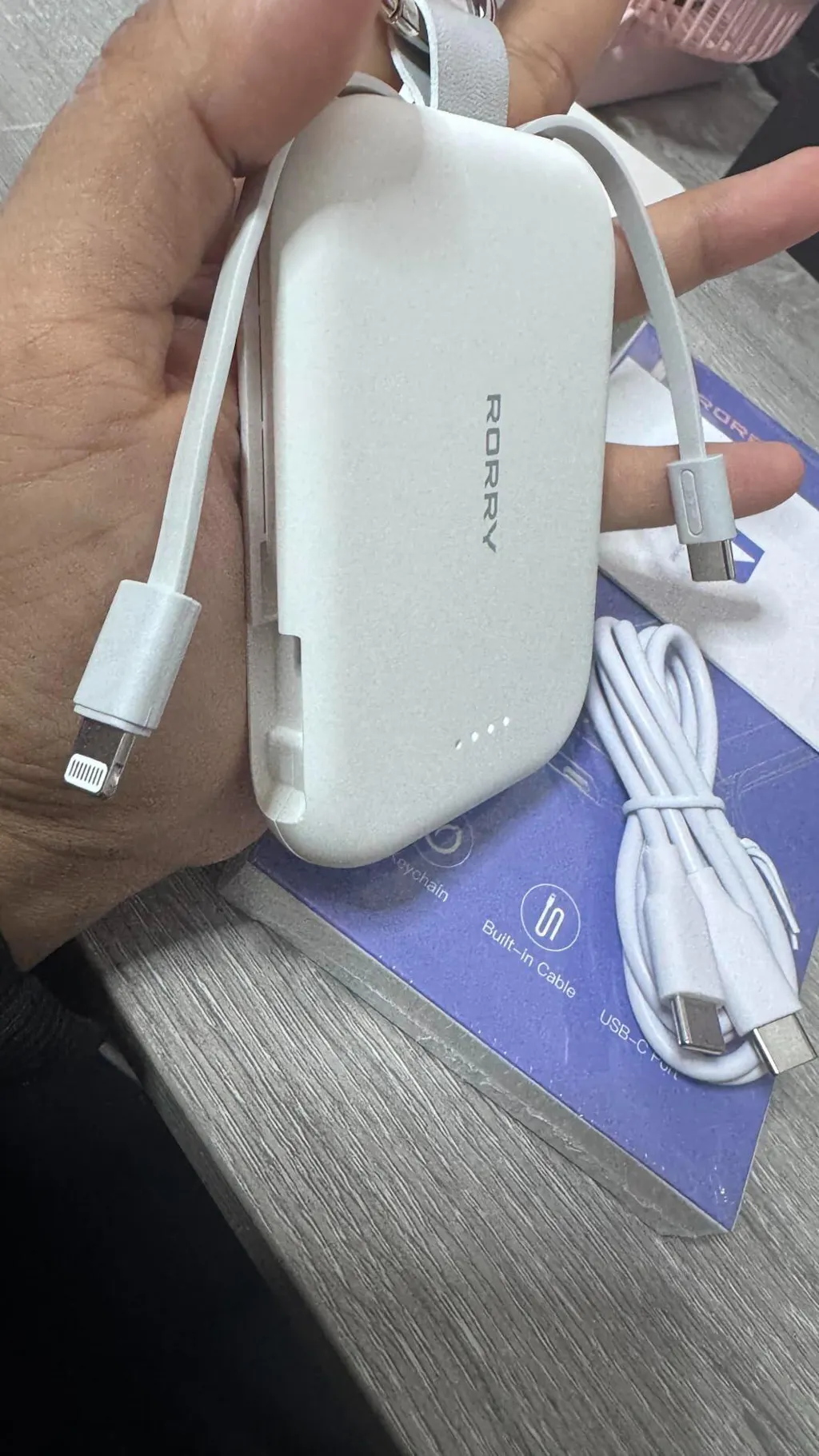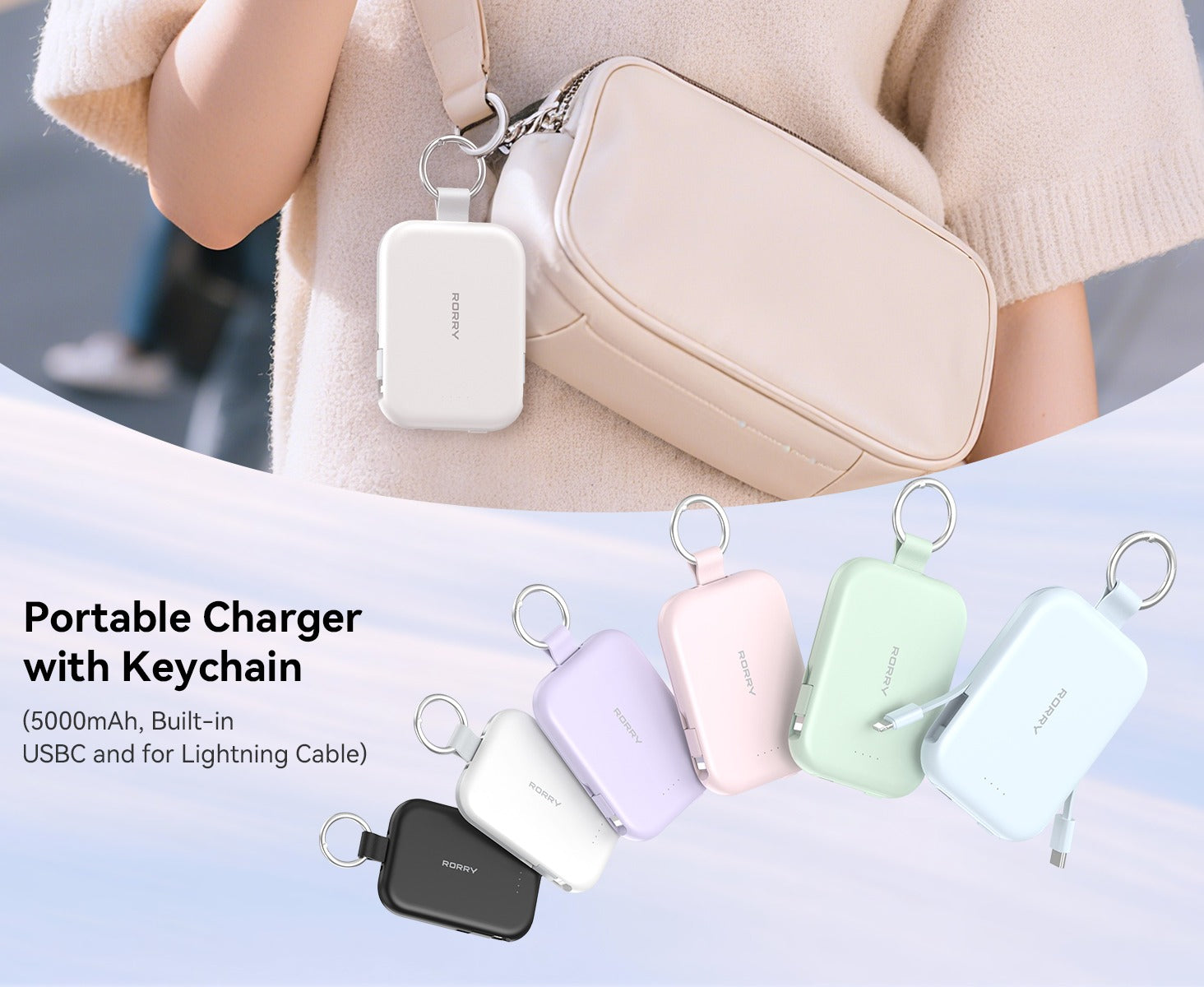 Chargeur portable porte-clés RORRY 5000 mAh : câbles USB-C et Lightning intégrés
