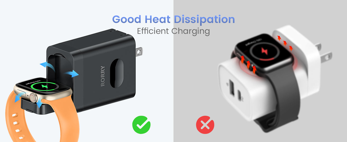 Built-in Upgraded Charger for iWatch: This wall charger includes a built-in foldable charger compatible with Apple Watch Series 9/Ultra 2/8/Ultra/7/6/5/4/3/SE. Fully charge your Apple Watch Series 9 in just 1.3 hours. Easy peasy!