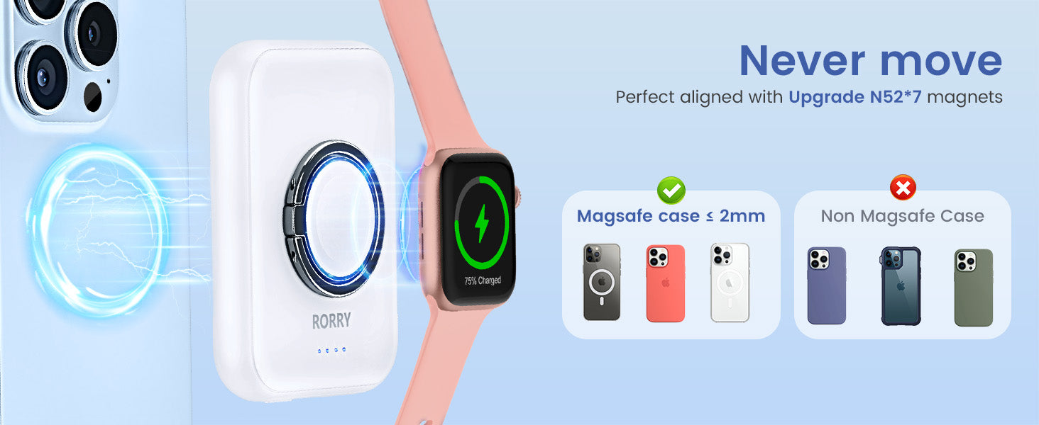 [Super-Fast Charging] Rorry for magsafe power bank supports 20W wireless fast charging, 2x faster than other charger.