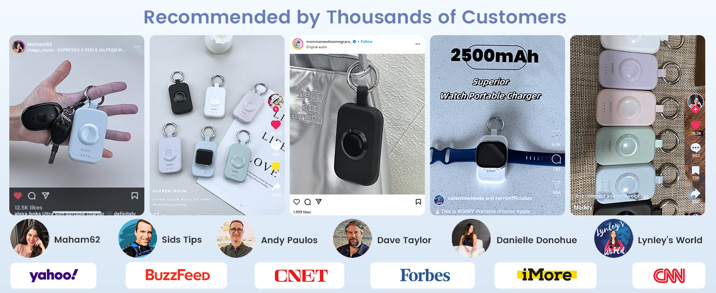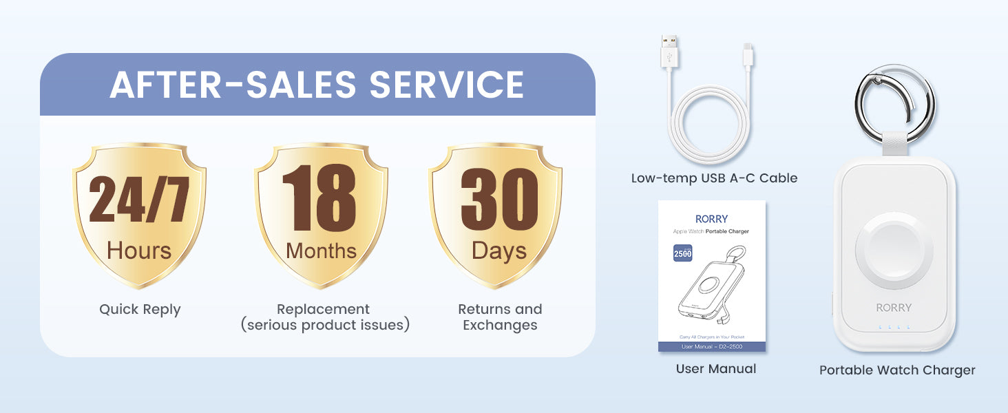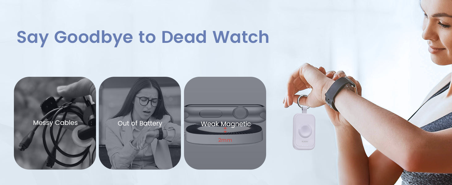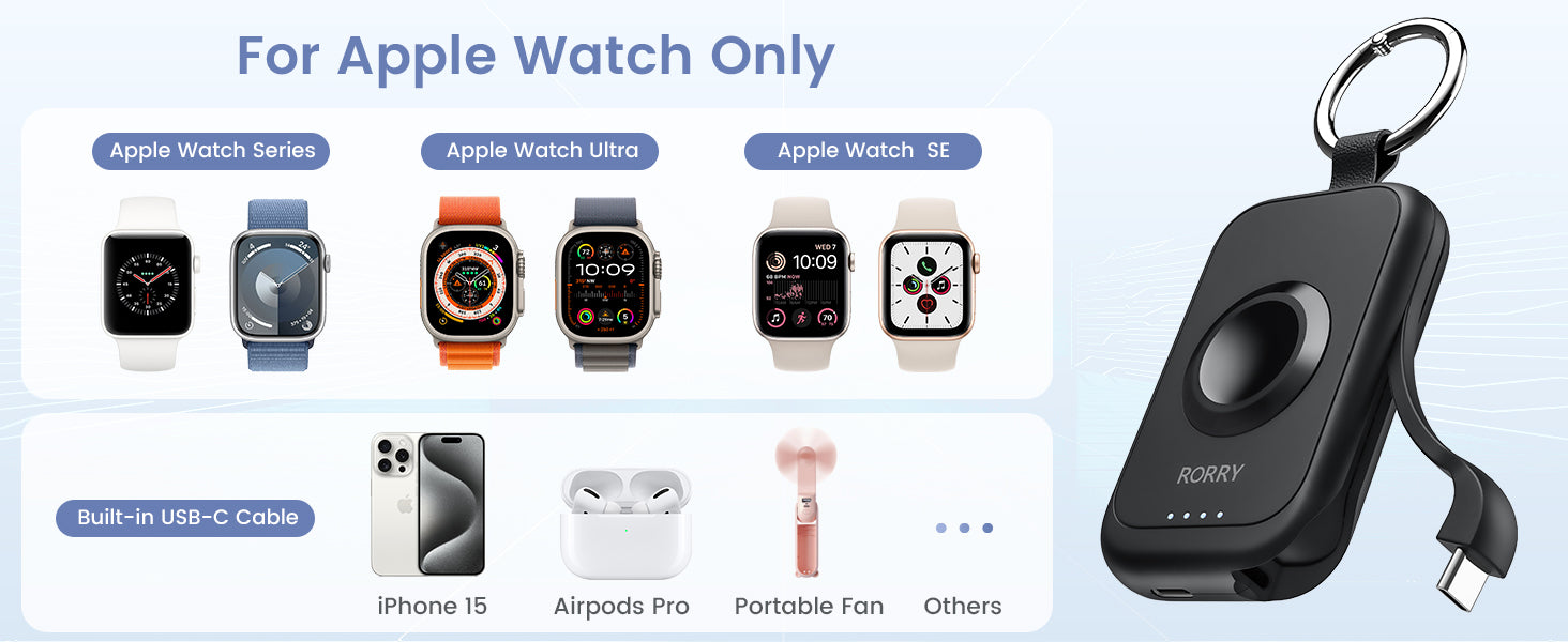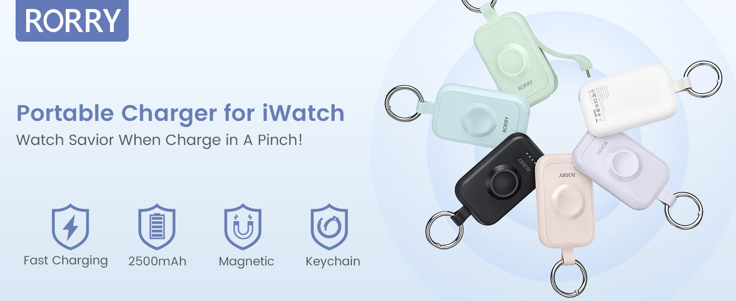 - Why RORRY Portable Charger for Apple Watch? Is your of iWatch always running out of juice? Constantly hunting for a power source? Tired of messy cables for iWatch while traveling? Say goodbye to those hassles with our sleek portable charger for Apple Watch