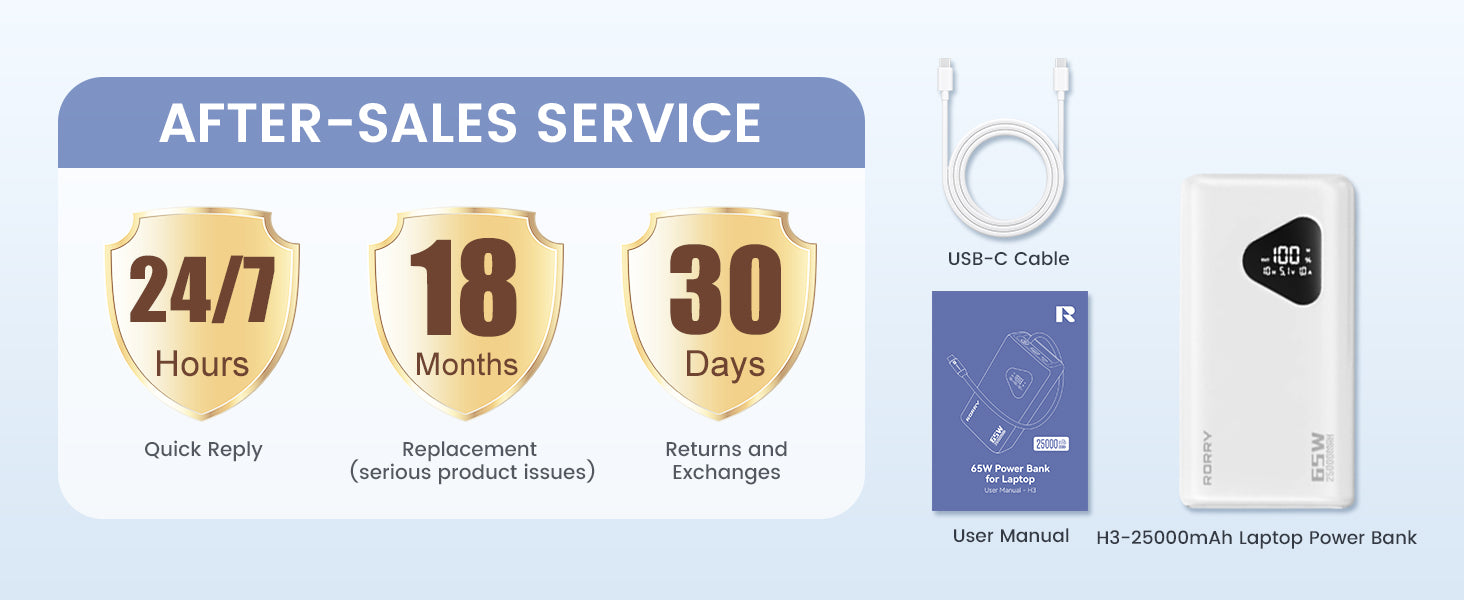RORRY H3 25000mAh Laptop Power Bank 65W PD Fast Portable Charger Battery Bank Built in Retractable Cables