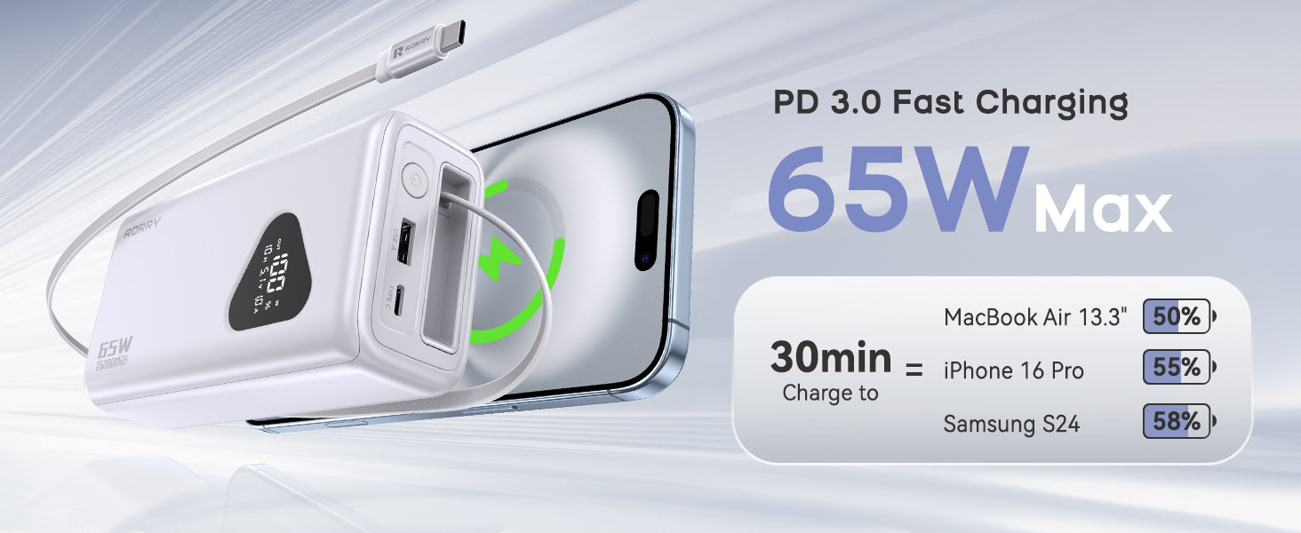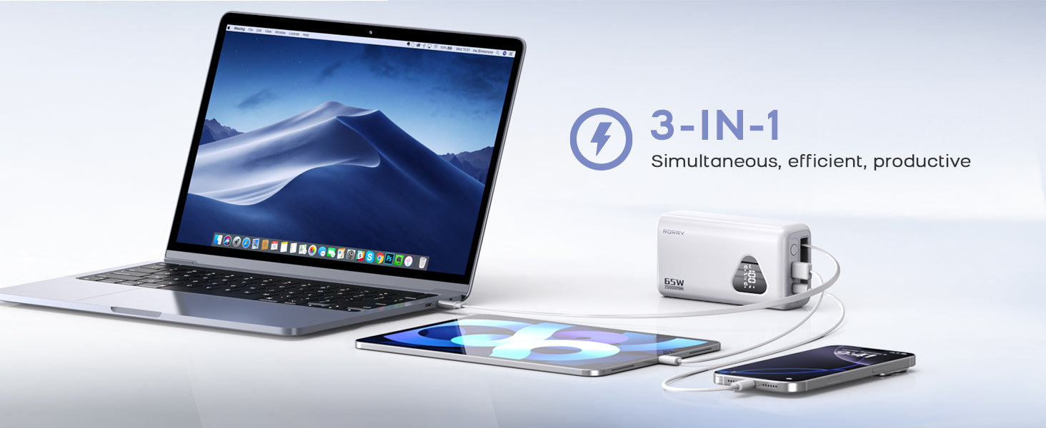 RORRY H3 25000mAh Laptop Power Bank: Retractable Cable, Power Simplified