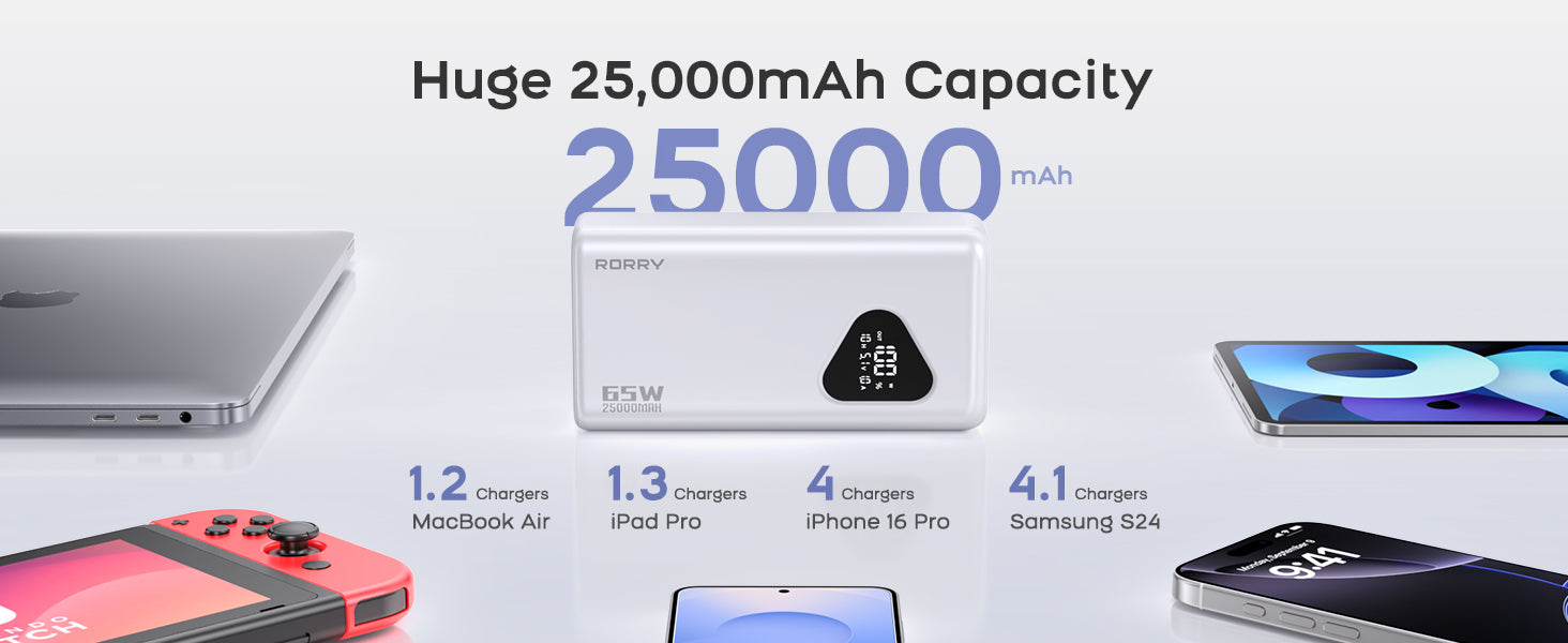 RORRY H3 25000mAh Laptop Power Bank 65W