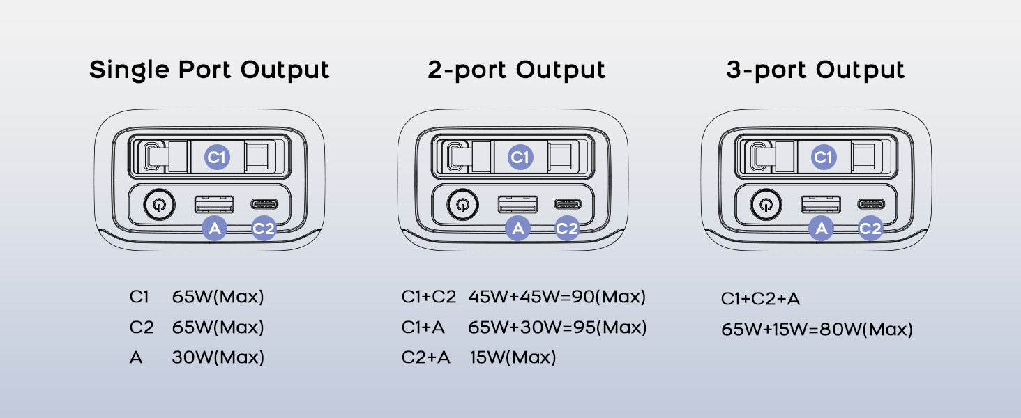 The maximum supported charging power varies by device. Charging speed also depends on the device's current battery level—when the battery is already high, it may not reach the maximum charging power.