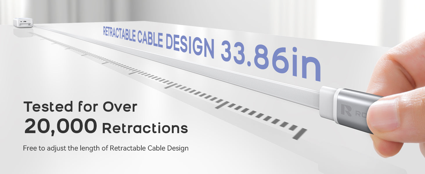 33.86in Retractable Cable: Tested for 20,000+ Retractions