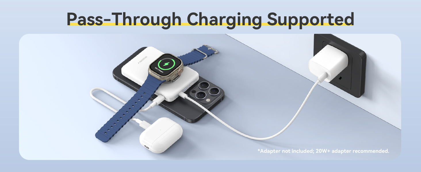 - Magnetic Power Bank for Seamless Charging: Effortlessly power up your iPhone and Apple Watch at the same time. Compatible with MagSafe cases and iPhone 16/15/14/13/12 series, Apple Watch Ultra 2/Ultra 1/10/9/8/7/6/5/4/3/SE, and AirPods. Just snap your device and enjoy fast cable-free charging.