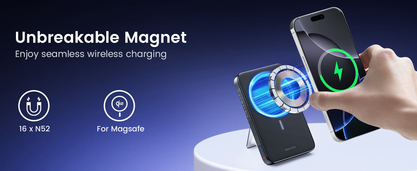 - Strong Magnets, Perfect Alignment: Snap and charge, never fuss with cables or plugs. Built-in 20*N54 magnets, this magnetic power bank ensures a secure and reliable wireless charging. Designed to be fully compatible with iphone 16/15/14/13/12 series and for magsafe cases.