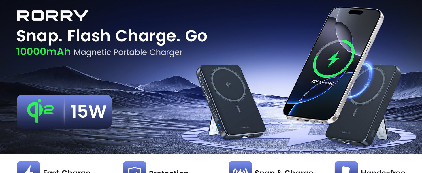RORRY Qi2 10000mAh Fast Charging Magnetic Power Bank Wireless Charger