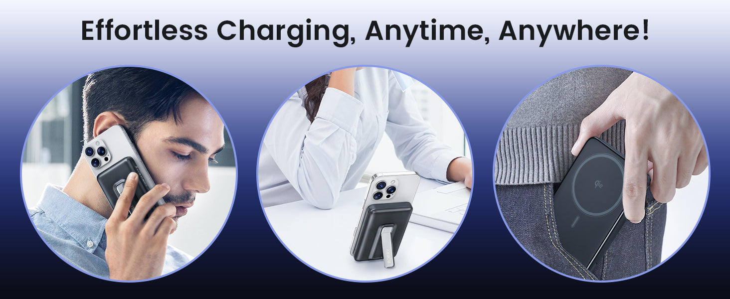 - Top-notch Safety: Equipped with an advanced temperature control chip, this for wireless portable charger offers full protection for your devices, maintaining battery health in long term. Enjoy a peace of mind knowing that your devices are safeguarded, and powered up without any worry!