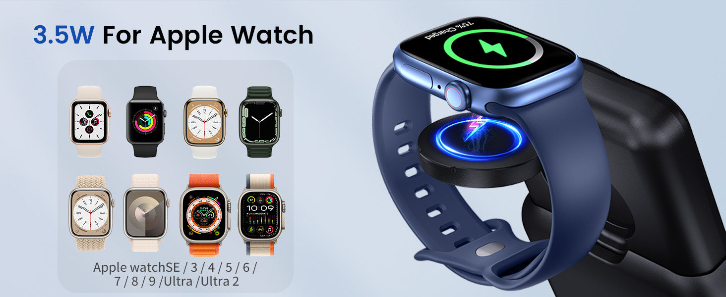 - 3 in 1, Mag-Charging All Simutaneously: This 3 in 1 Charging Station is designed for iPhone, Apple Watch and AirPods, wirelessly charging 3 devices simultaneously, simplifying your charging routine & keep your desktop clean and tidy.