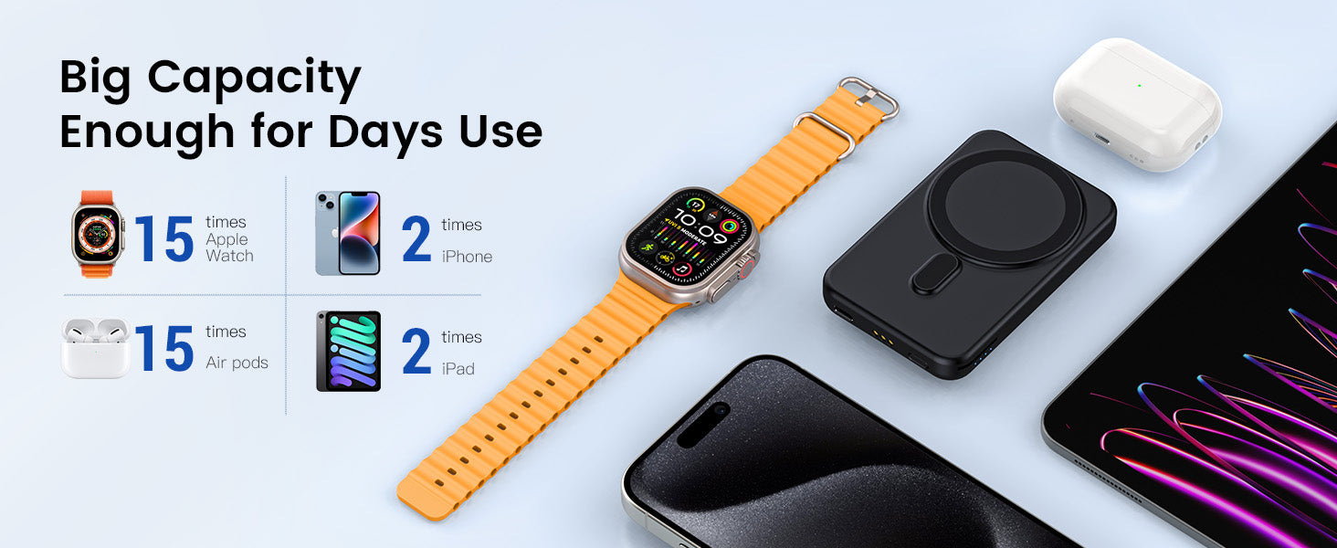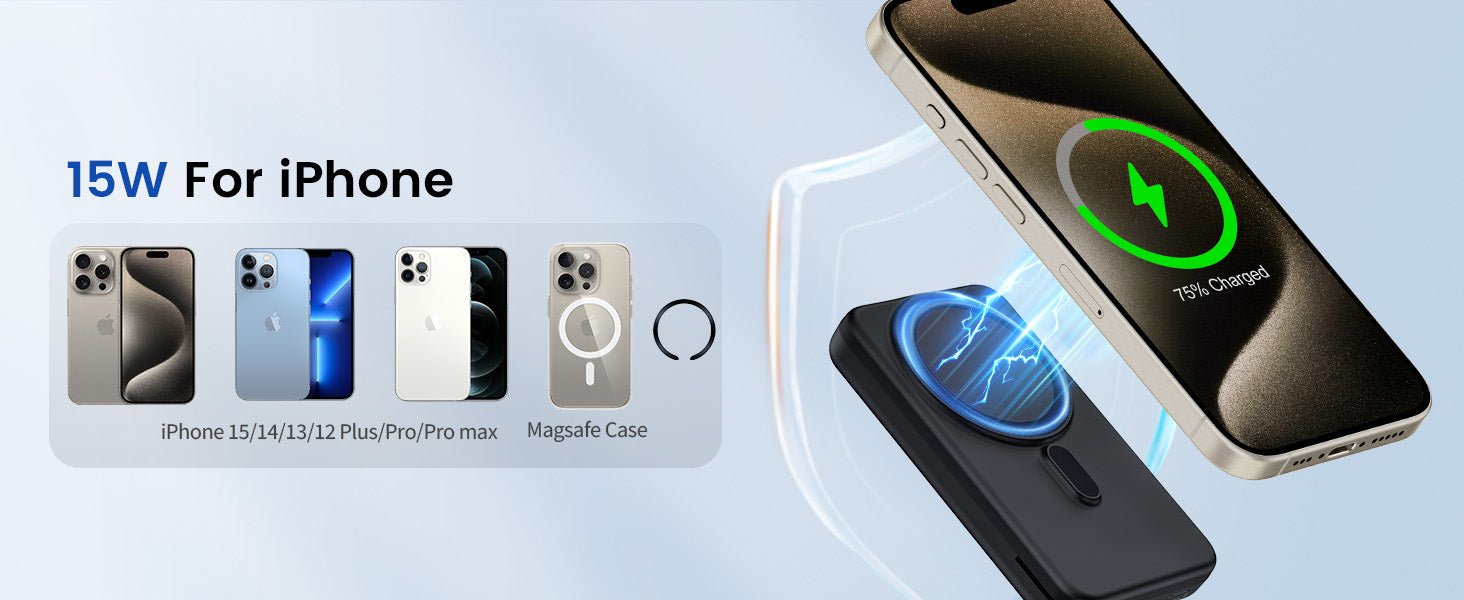 - Safety Use: Our for mag safe charger portable for iphone is CE,FCC, UL certificated. Dual protection with the smart microchip & advanced temperature monitoring system, so it protect your devices from short circuit, overheating, over voltage or over current. Enjoy worriless charging especially on night time.