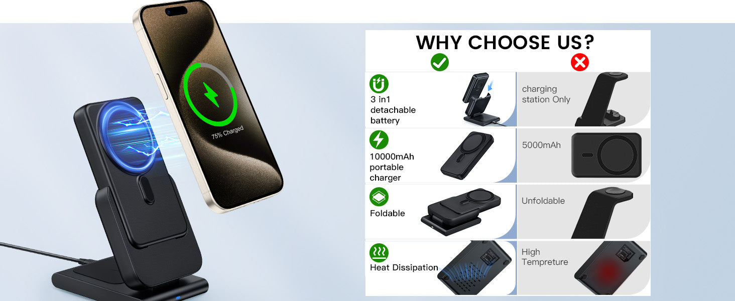 - Foldable & Compact: This for magsafe charging station is foldable, you can easily fit it in your bag or suitcase. Small footprint, it won't take up much space. A real must-have travel accessory.